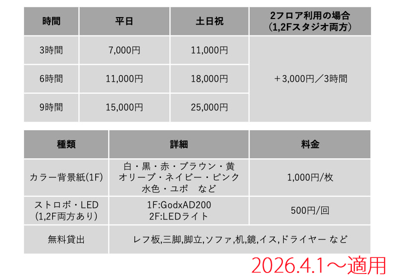 - 2026年4月1日から料金を価格改定いたします。2026年3月中にご利用をお考えの方はお申し出ください。詳しくは以下をご確認ください。